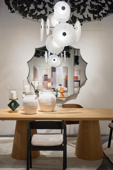 Cerámicas en nuevos acabados y formatos, lámparas de líneas suaves y texturas marcadas, piezas en cristal con colores que juegan con la luz, lienzos pintados a mano en composiciones abstractas… Cada elemento de nuestra nueva colección está pensado para crear espacios evocadores en los que sentirse “en casa”.